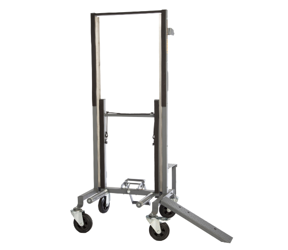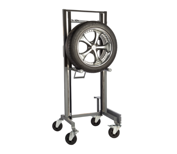 The Winntec Wheel Assist Gen 2 travels from floor level to post-lift height. In practical tire shop use, that means the same tool can pick up the assembly at the vehicle, stay with it through service, and bring it back into position for reinstallation without a hand-carry step in between.
